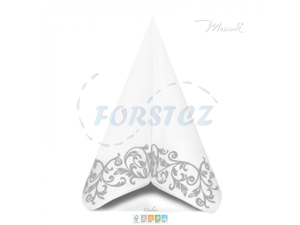 Airlaid svatební ubrousky se stříbrným dekorem ROB 40x40 cm (50 ks)