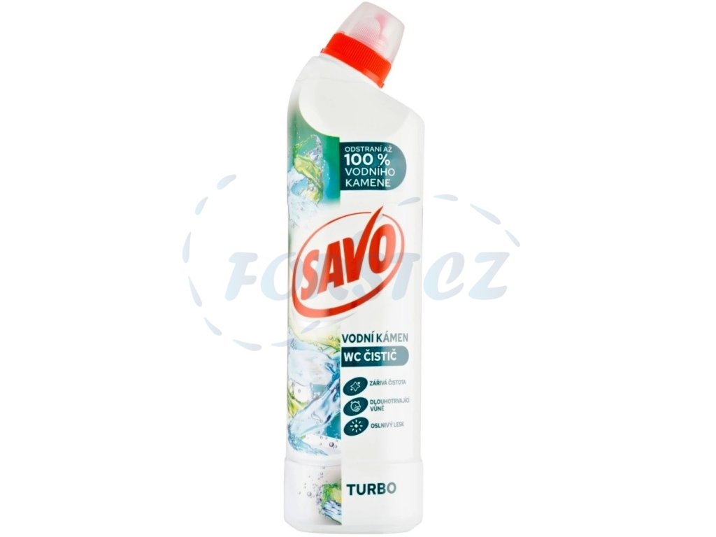 Savo WC gel Turbo je tekutý čisticí a dezinfekční přípravek pro hygienicky čistou toaletu. Likviduje až 99,9 % bakterií a virů, odstraňuje vodní kámen, rzi a zašlou špínu, zanechává toaletu zářivě bílou. Příjemná vůně zajišťuje dlouhotrvající svěžest.