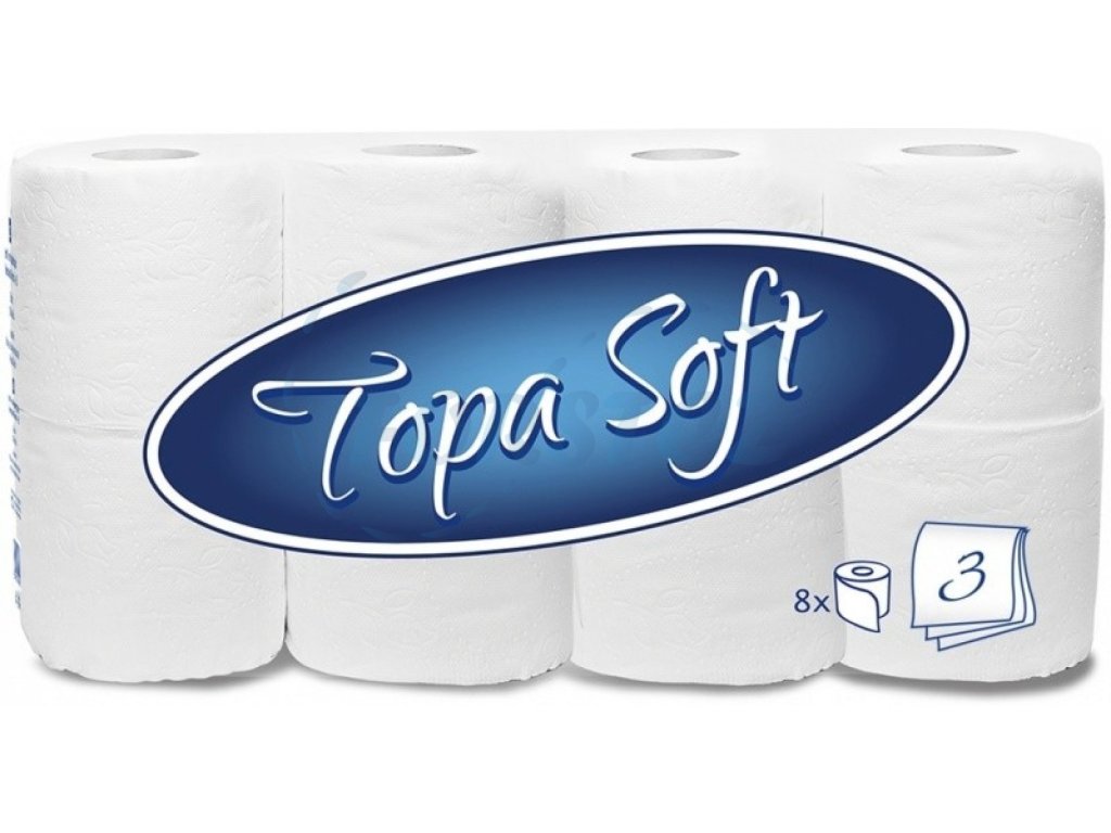 Toaletní papír 3vrstvý TOPA SOFT 8 rolí x 150 útržků, bílý, 100% celulóza